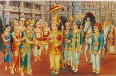 Kusumamba consumed the payasam with devotion and on VAISHAKA SHUDDHA DASHIMI day, she gave birth to twins - A boy, named Virupaksha who was an incarnation of God Nandikeswara and, a girl, Vasavi, an incarnation of Goddess ADIPARASHAKTI. Virupaksha attained proficiency in Dharmashastra, politics and martial arts.